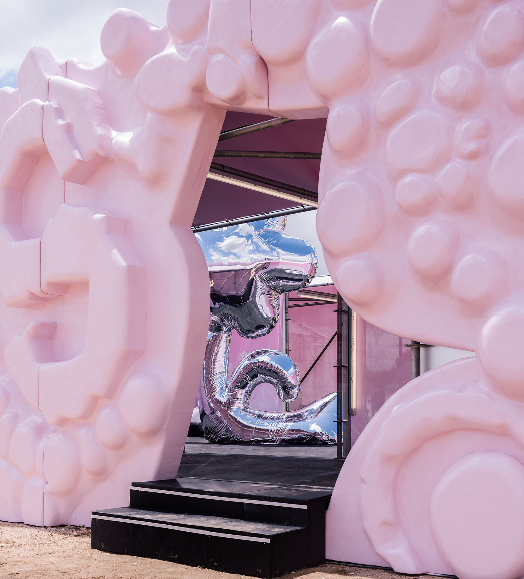 This project continues our research in the world of dreams. In this case, the objective is to translate the subconscious of a brand into the physical reality of the festival. The "dreamy" universe of TOUS has become a giant jewel in the form of architecture. A pavilion that creates a boundary through a facade, which divides the world of wakefulness from the dream world.